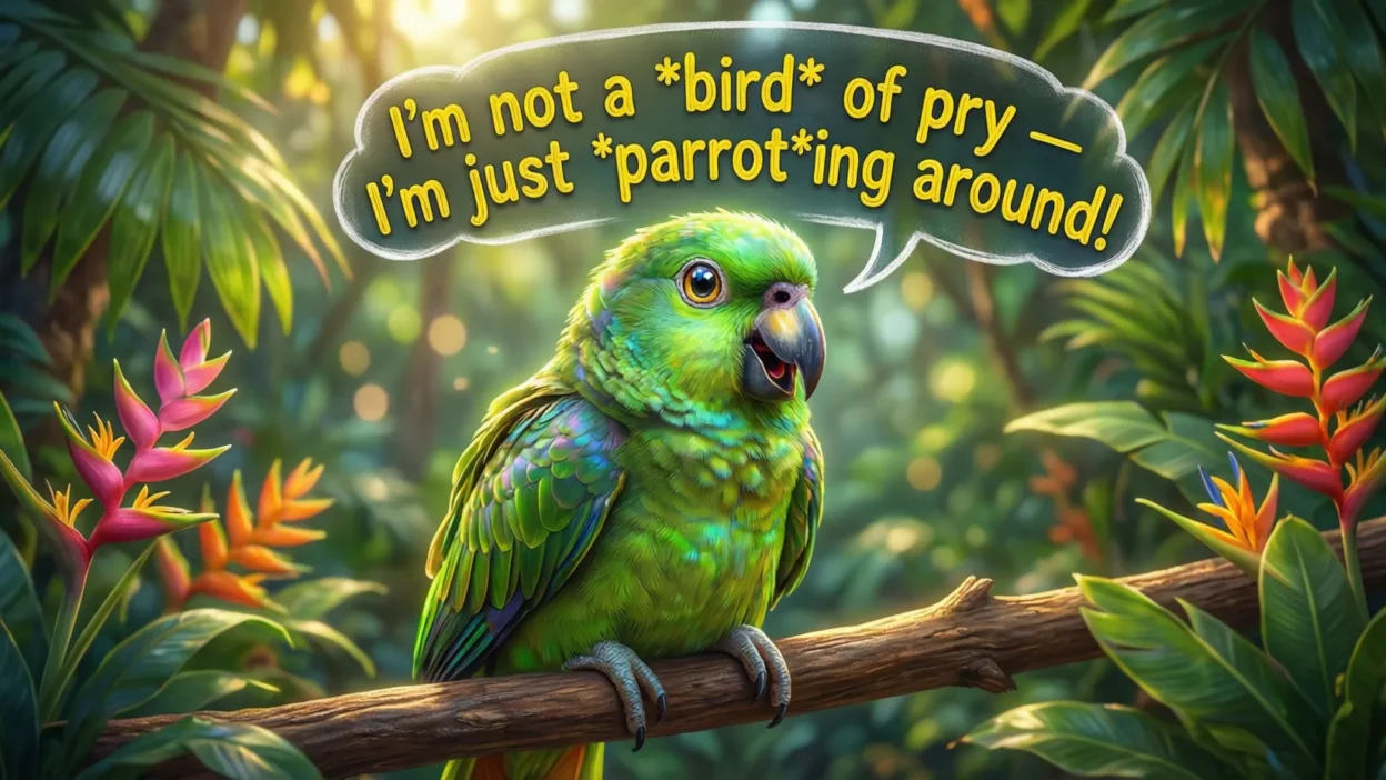 That’s exactly the vibe I’m going for here: dark, muddy humor with feathers. Whether you’re a fan of twisted wordplay, love animals with attitude, or just want a laugh that’s a little offbeat, these parrot puns are going to hit all the right notes.